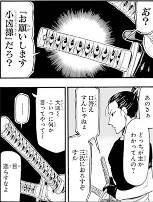 一対の刀の姿をしていて、個体名は大刀の「大凶」と小刀の「小凶」。