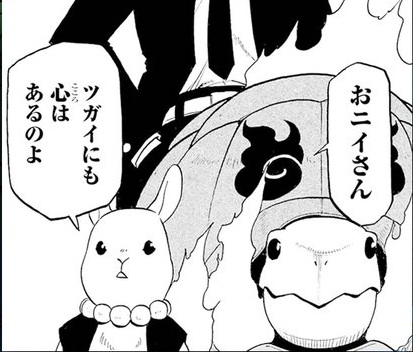 兎と亀は、その名の通りウサちゃんとカメちゃんからなる可愛らしいツガイで、作中では影森家の使用人・黒谷ハルオの相棒として活躍。